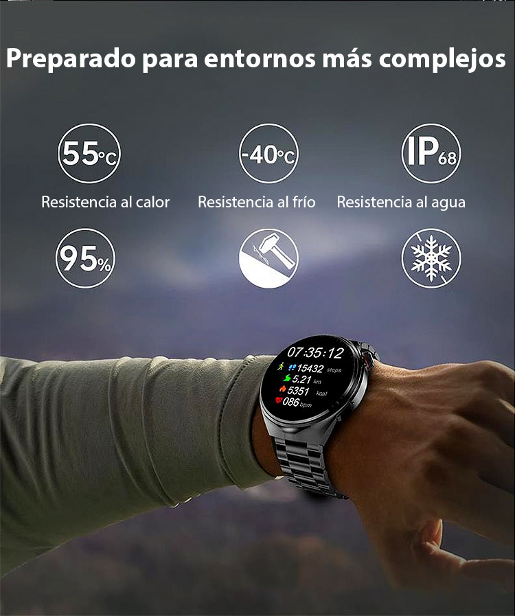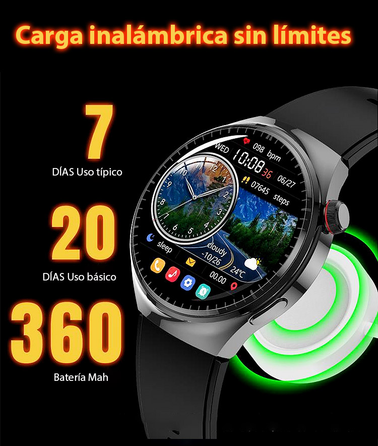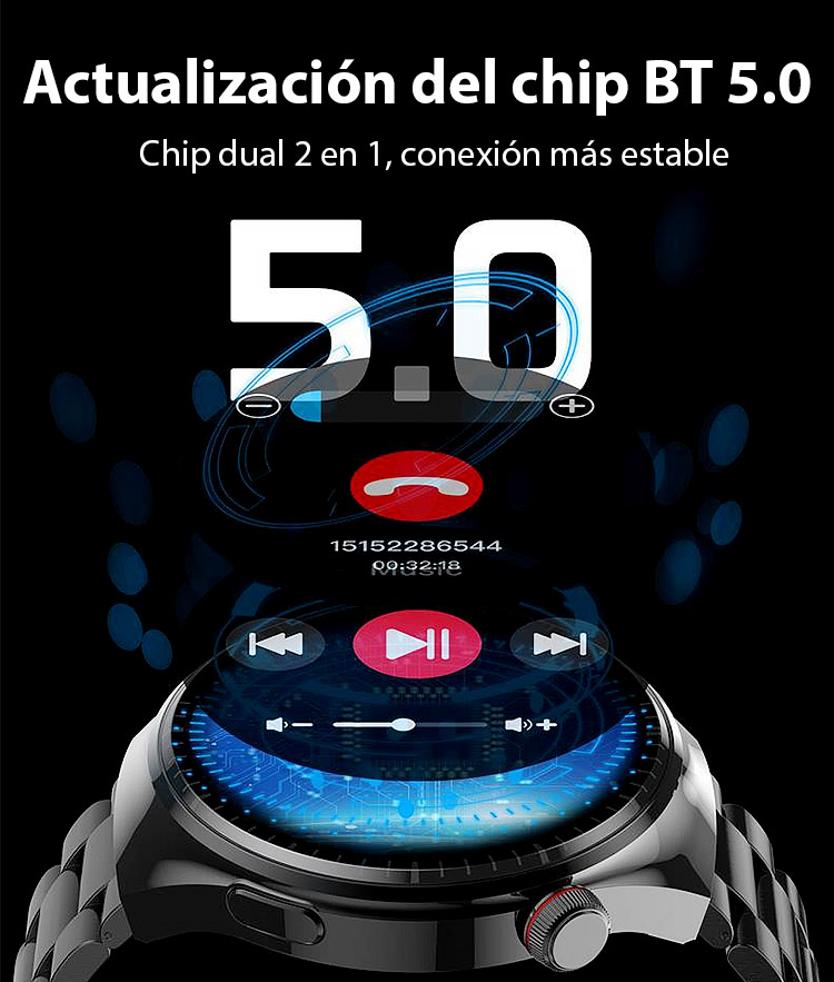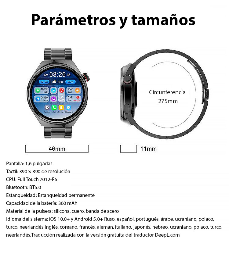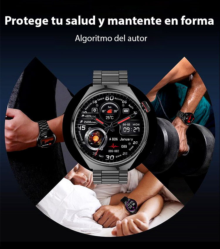 ⚡Mide glucosa en 1 seg - Sin pinchar el dedo! Correa de acero Watch4 watch